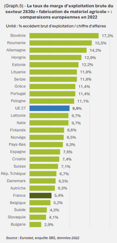Le rapport Axema éclaire des tendances profondes qui transcendent le cycle conjoncturel. La France pèse lourd dans l'Union européenne avec 61 300 emplois dans la filière, derrière l'Allemagne. Sa rentabilité patine toutefois. L'excédent brut d'exploitation s'établit à 5,4% contre 14,2% outre-Rhin.