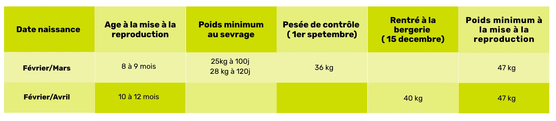 Repère de poids et la mise à la reproduction des agnelles (Source: Institue de l'Elevage) ©Laurent Saboureau